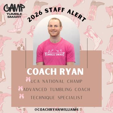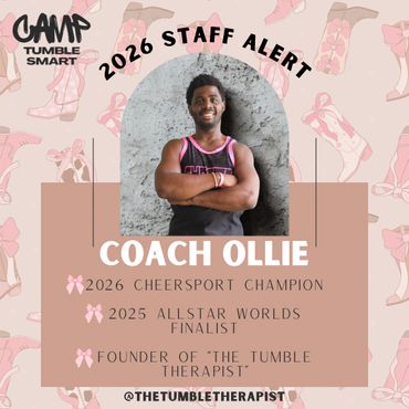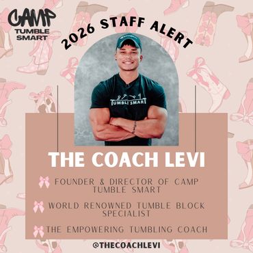 Coach Levi, founder and director of Camp Tumble Smart, often jokes that starting the camp was a bit selfish... He created it as an excuse to invite and learn from the best coaches in the country at his gym, Tumble Smart Athletics in Tulsa, Oklahoma. Because of this, every coach at Camp Tumble Smart is carefully handpicked by Coach Levi—some are big names in the cheer, gymnastics, and tumbling world, while others might be lesser-known but bring a unique skill set that he believes will benefit the athletes. His goal is for Camp Tumble Smart to be an enriching experience not only for the athletes but also for himself and the other coaches. It's a space for everyone to grow, share knowledge, and take what they’ve learned back to their gyms, so Camp Tumble Smart quality coaching spreads nationwide year-round!